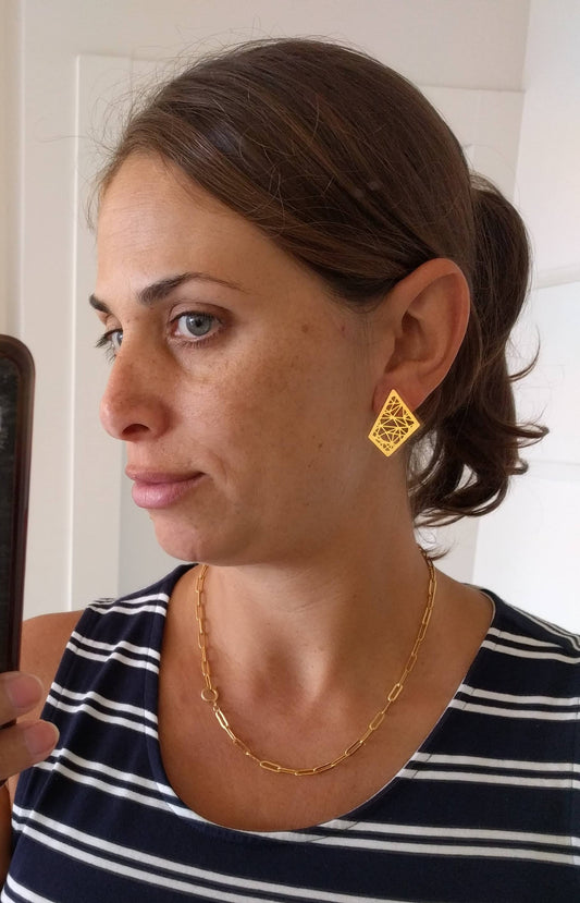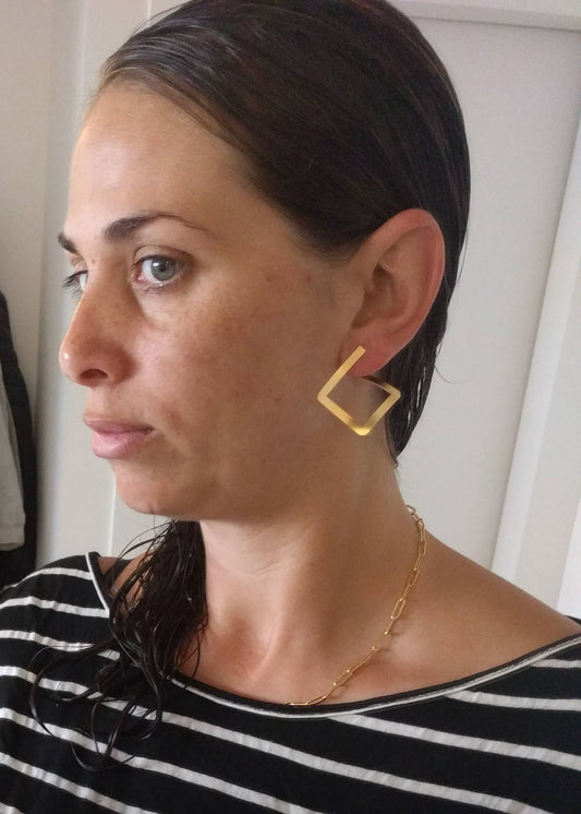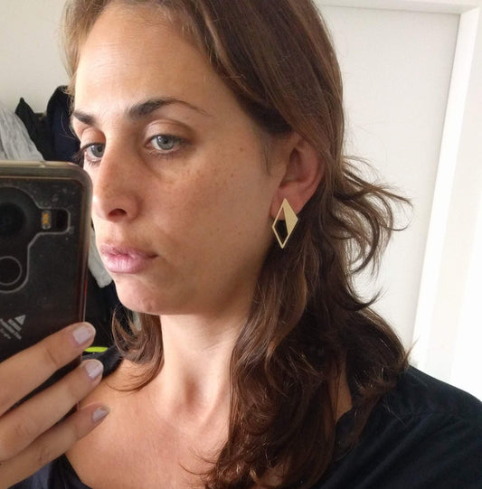 עגילים צמודים | עגילים גיאומטריים מעויין קטן