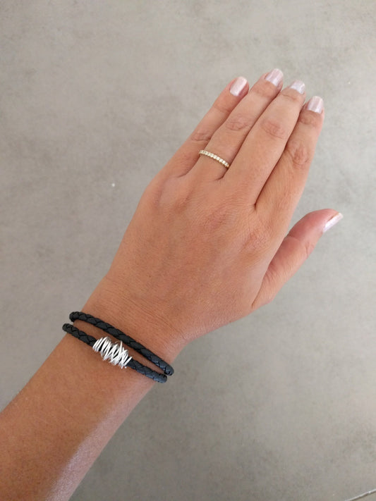 צמיד עור לאישה | צמיד שזור כפול עם ספירלה כסף