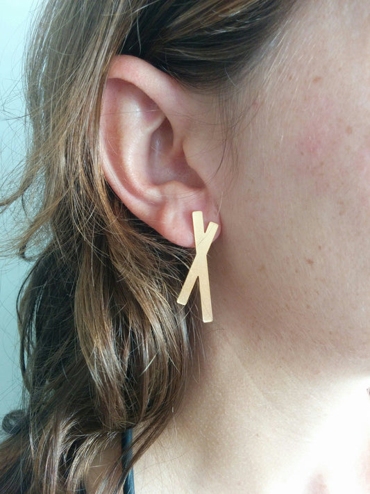 עגילים גיאומטריים | עגילי זהב תלויים ריבועים