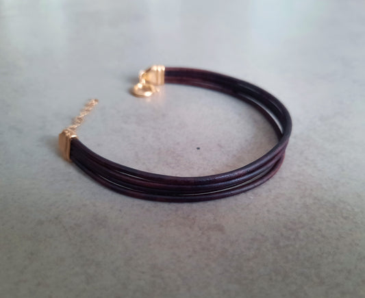 צמיד עור לגבר עם חריטה שני שמות | צמיד עור חום כהה