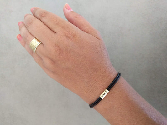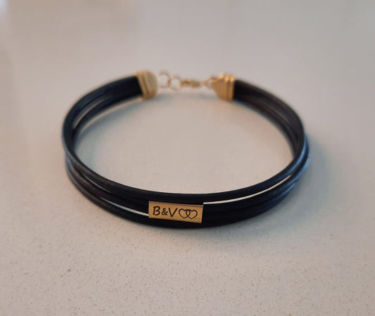 צמיד שם בחריטה | צמיד עור לגבר ולאישה