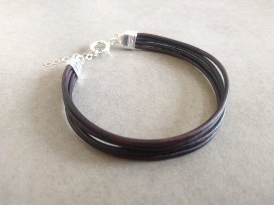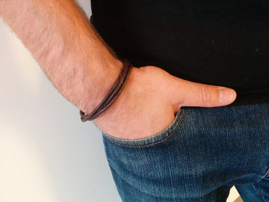 צמיד לגבר | צמיד עור חום וכסף לגבר