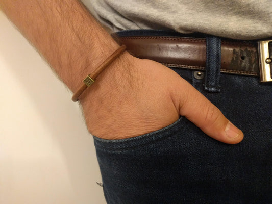 צמיד לגבר | צמיד עור חום עם אות לועזית