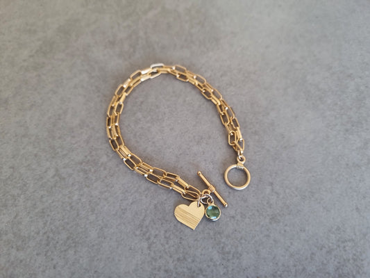 צמיד לולאות סגירה מיוחדת עם לב ואבן