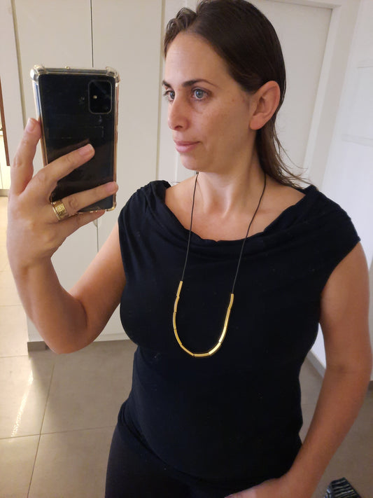 שרשרת ארוכה חוט שחור וצינורות זהב וכסף