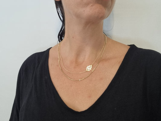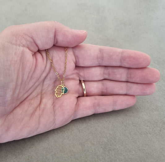 שרשרת חמסה זהב קטנה עם אבן טורקיז