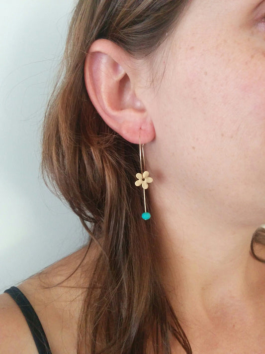 אזל המלאיעגילי חישוק זהב עם פרח ואבן