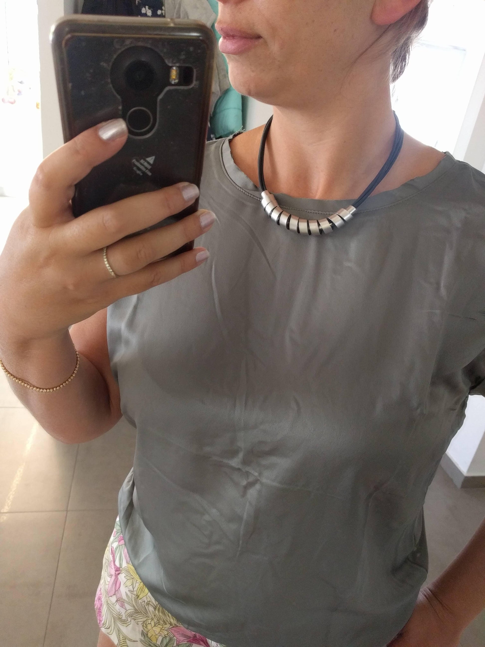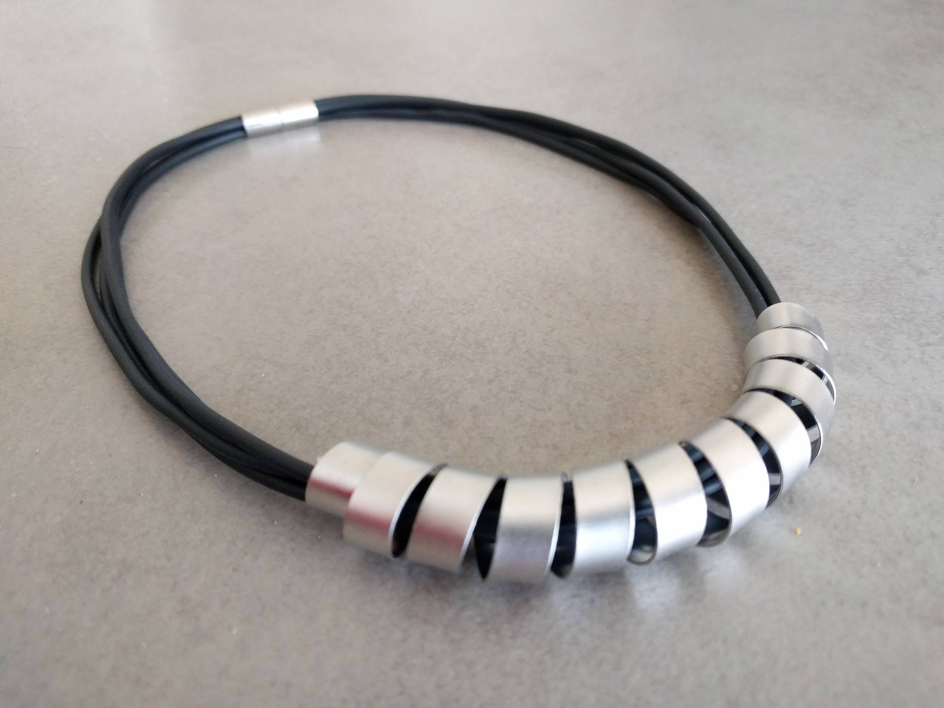 חוטי סיליקון שחור בשילוב ספירלה בציפוי כסף איכותי, אורך השרשרת 42 ס״מ